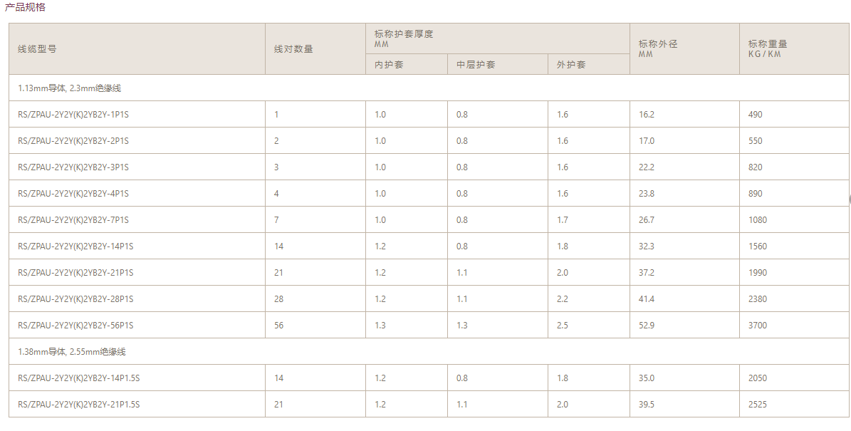 ZPAU&ZPAU-SH主信号电缆(交流电气线路)
