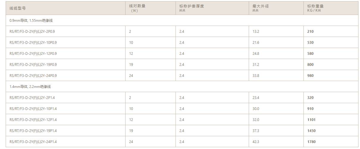RT/F3 D&S&B型计轴器电缆专为在列车计轴检测系统中传输频率小于90 KHz的信号而设计。