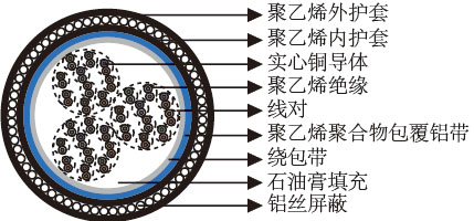 该电缆适用于基于调制器的监控系统,工作频率在300到3000Hz之间的。