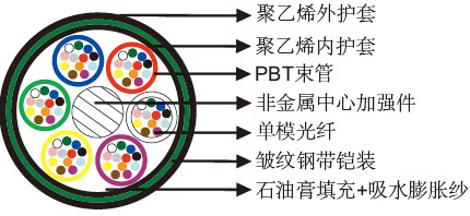 该光缆主要用于铁道沿线远距离的通讯连接,适合直埋或槽沟内敷设