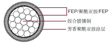 单芯聚全氟乙丙烯(FEP)/聚酰亚胺/聚全氟乙丙烯(FEP)胶带绝缘M81381/11电缆应用于航空航天,此类线缆非常适合与排放黑烟及超负荷的稳定性有关的应用程序。