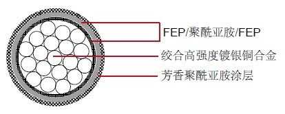 单芯聚全氟乙丙烯(FEP)/聚酰亚胺/聚全氟乙丙烯(FEP)胶带绝缘M81381/20电缆应用于航空航天,此类线 缆非常适合用在与排放黑烟及超负荷的稳定性有关的应用程序。